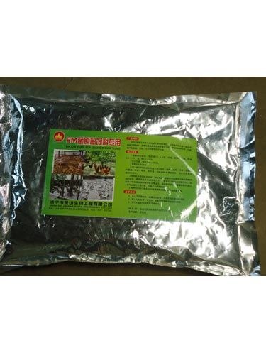 ★把一袋EM飼料添加劑加人到1噸的(麥麩、豆粕、玉米、稻糠、木薯渣、粉渣、草粉、秸稈等)飼料原料種混合均勻,加水把濕度達(dá)到30%左右。堆積起來(lái)用塑料布蓋緊,密封發(fā)酵,根據(jù)外界氣溫適度調(diào)節(jié)發(fā)酵時(shí)間的長(zhǎng)短,夏季溫度在30度左右2-3天,室溫再10度左右發(fā)酵10天,聞到有一種發(fā)酵味道和酸味就證明成功。溫度要控制好,溫度達(dá)到40度以上就可以進(jìn)行小袋分裝,分裝之后要密封好。